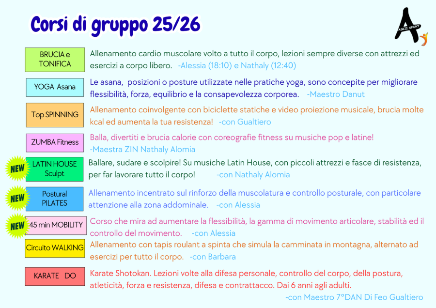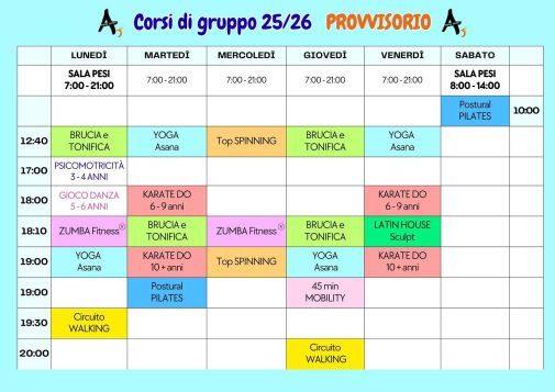 ORARIO CORSI 2025/26 PROVVISORIO...IN AGGIORNAMENTO!!!